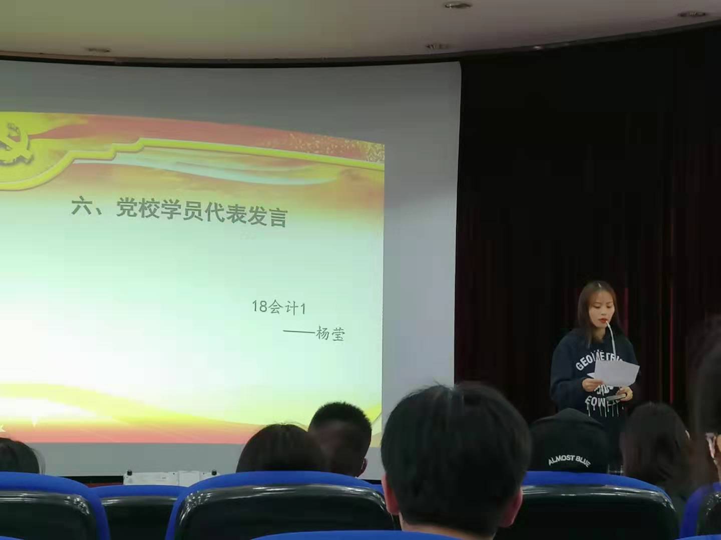 党校学员代表杨莹主要说明参加此次党课的培训是要汲取它背后蕴藏的智慧和精神,要通过党课的学习,真正的提高自己的思想素质和知识水平。